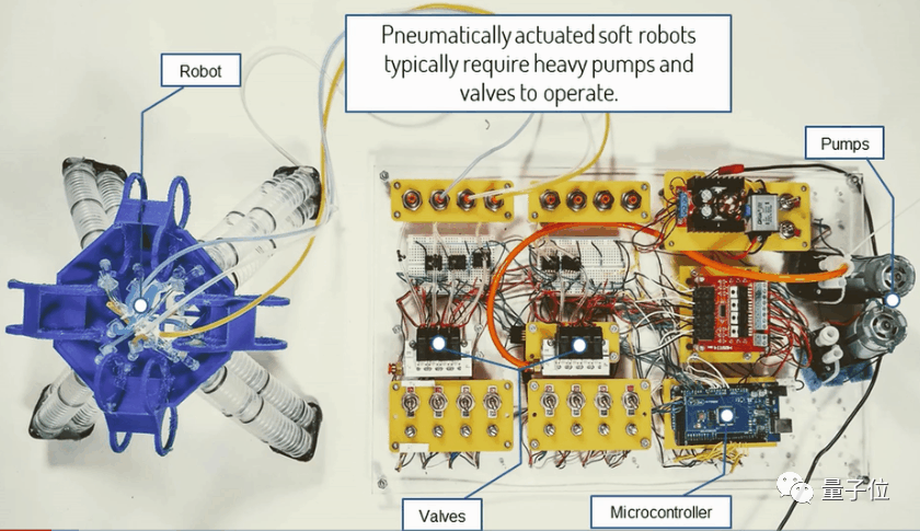 用气流阀取代电子晶体管,用气动逻辑取代计算机逻辑,研究人员成功让这个机器人摆脱了传统机电元件的控制系统。