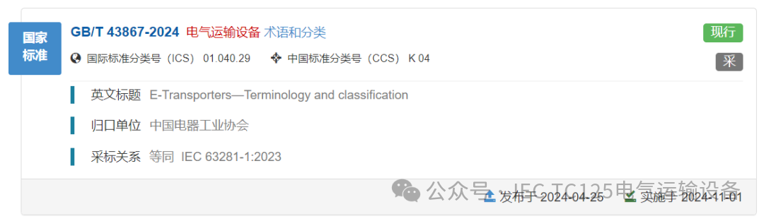 在全球化浪潮下,标准的统一与协调对于行业的可持续发展具有深远意义。IEC/TC125 四项标准的发布,为电气运输设备这一新兴品类提供了清晰的术语定义和明确的技术规范、测试方法,保障了产品的安全和质量。后续,在 IEC/TC125 标准的引领下,电气运输设备将打破地域壁垒,加速全球市场的融合与流通,促进产业链上下游的高效协同,激发企业的创新活力,推动技术不断迭代升级 ,以更卓越的性能、更环保的理念、更智能的特性,开启全球绿色交通、智慧物流的行业发展崭新篇章。