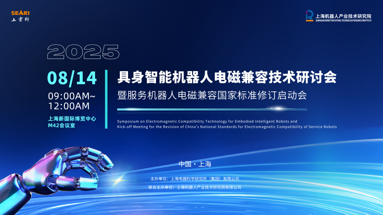 “2025中国具身智能机器人产业大会暨展览会”将于8月13-15日在上海盛大开幕。我院承办分论坛“2025具身智能机器人电磁兼容技术研讨会暨服务机器人电磁兼容国家标准修订启动会”,现诚挚邀请各界同仁共赴盛会,携手共创机器人 EMC 安全新未来!